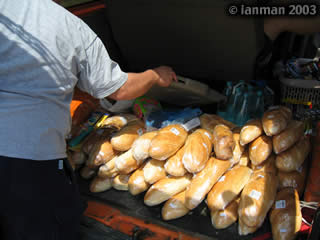 Many of the people I know are out of town on a streetkids' camp, so on Wednesday I jumped at the chance to go visit. We needed to deliver someone to the camp (along with 60 more loaves of bread plus meat and vegetables) so I joined the party for the several hour drive to the camp site, collecting supplies en route. Most bread here is unsliced and isn't normally plastic wrapped. |